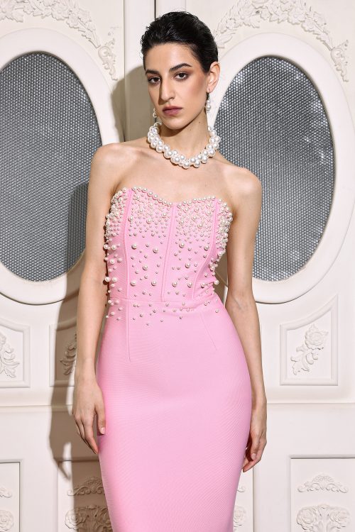 Slare Pearls Fishtail Maxi Dress