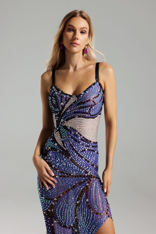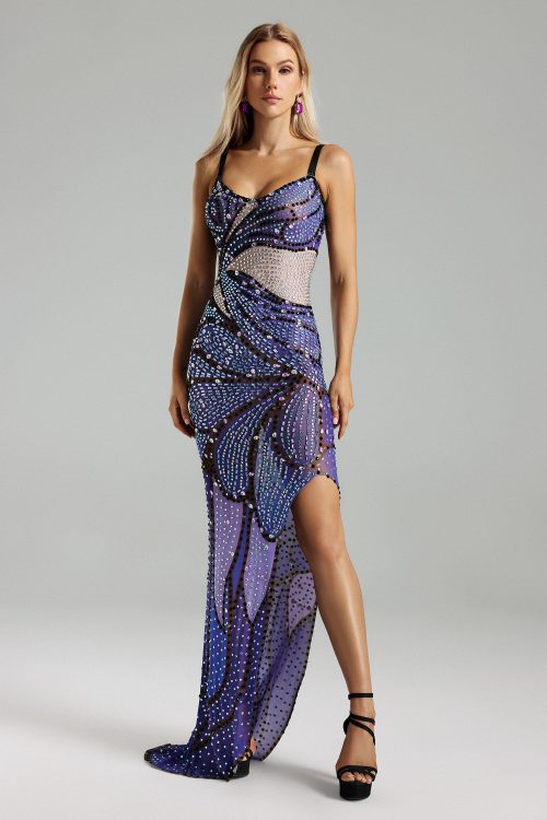 Sling Diamante Printed Slit Dress