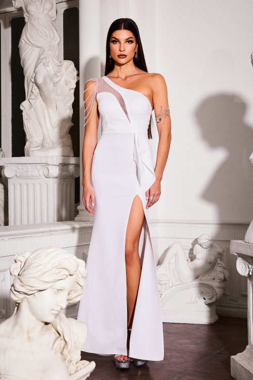 Tulip Diamante Chain One Shoulder Slit Dress