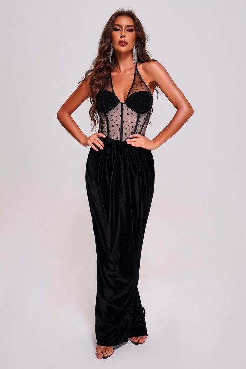 Yedda Mesh Velvet Maxi Dress