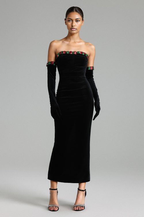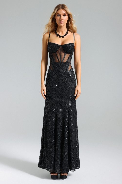 Felix Sleeveless V-Neck Flowers Diamond Maxi Dress