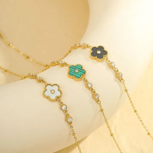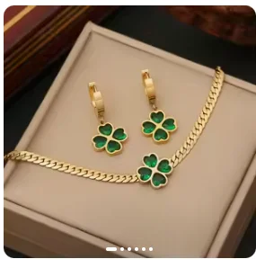 18k Gold Does Not Fade Jewelry Set Fashion Women’s Favorite Stainless Steel Emerald Stone Clover Jewelry Sets.