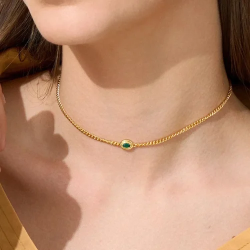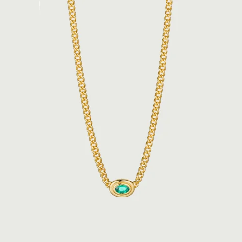 18k Gold Oval Cut Lab Emerald Cuban Chain Necklace Waterproof Gold Fine Pendant Necklaces Fashion Necklaces 2025