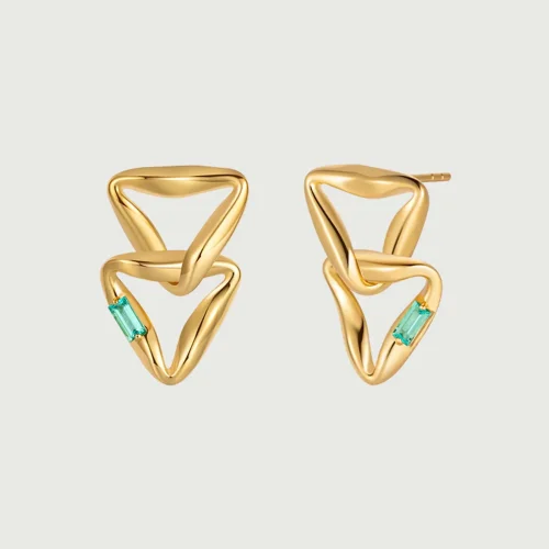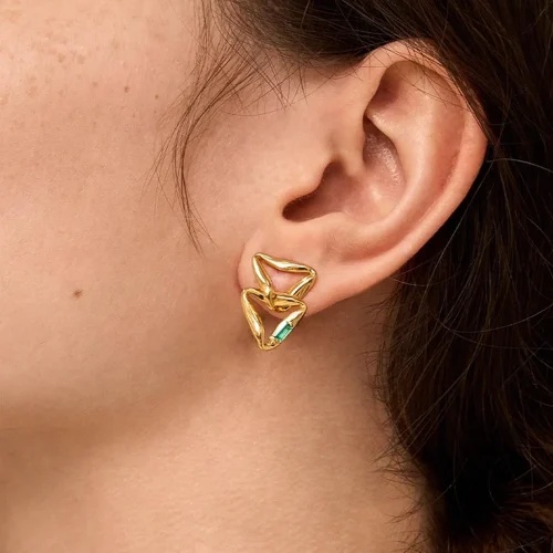 18k Gold Emerald Overlapped Triangle Earrings Designer Charm Earrings Trending Earrings 2025 Waterproof Jewelry
