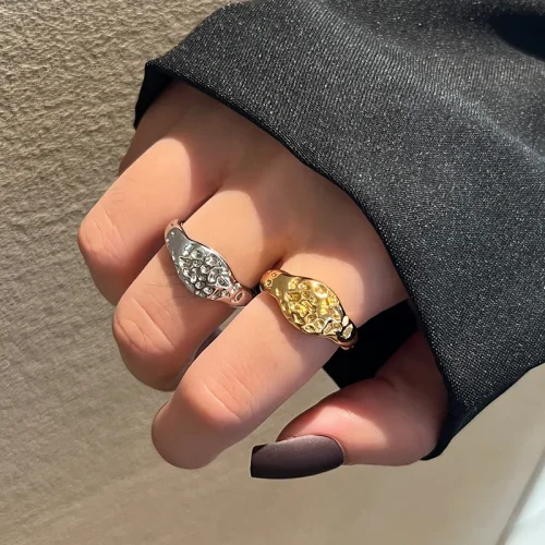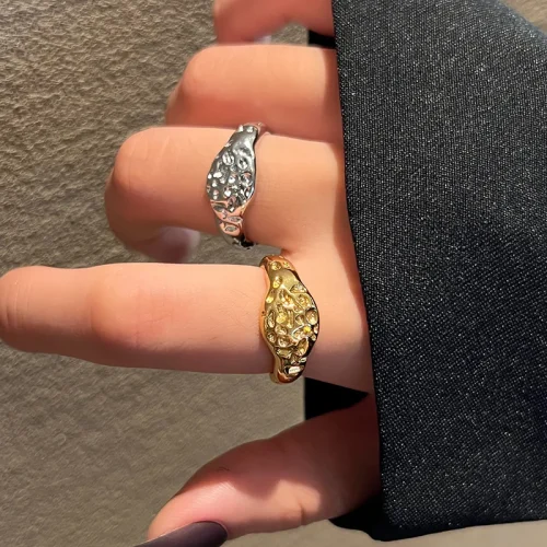 18K Gold Jewelry Ring for Girls Fashionable Bump Irregular Design with Adjustable Temperament for Engagement Alloy Material