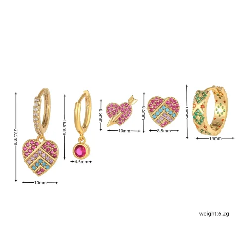 18K Gold Plate Colorful Crystal Cubic Zircon Full Diamond Rhinestone Heart Charm Earring Stud Drop Earrings Jewelry for Women