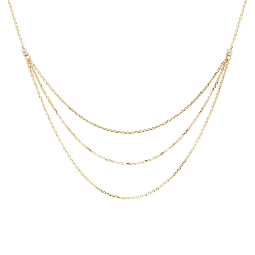 18k Gold Fashion Jewelry 925 Sterling Silver Triple Layered Cubic Zircon Gold Plated Necklace for Women