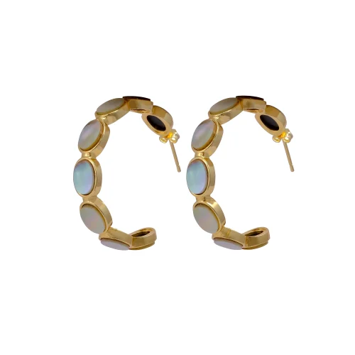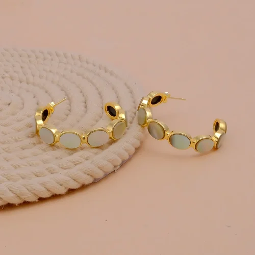 18K Gold Plated Mother of Pearl Hoop Earrings Handmade Iridescent Oval Gemstone Statement Anti-Tarnish Jewelry for Women
