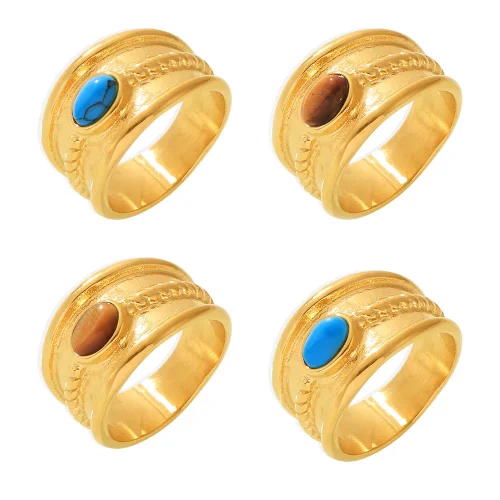 18K Gold Plated Natural Stone Stainless Steel Ring Trendy Fashion Jewelry for Women for Wedding or Gift Eye Shape Pattern