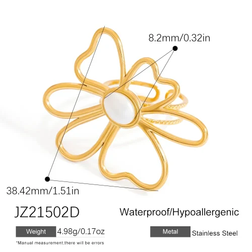 18K Gold Plated Irregular Hollow Flower Open Ring Jewelry for Women Fashion Jewelry