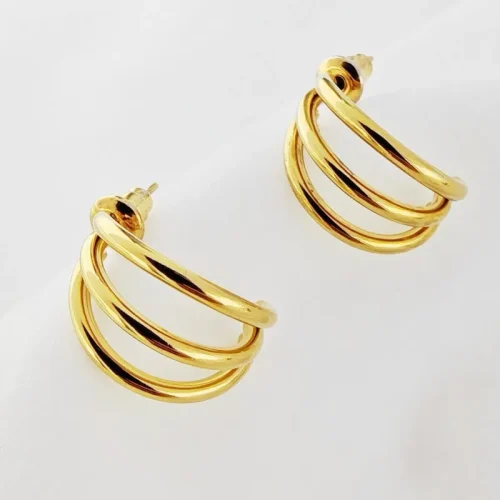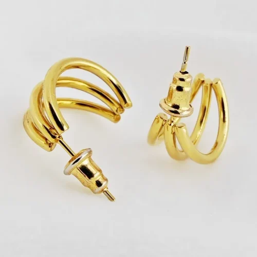 18K Gold Plated Stainless Steel Smooth Triple Wire Fashion Earrings Party Gift Jewelry