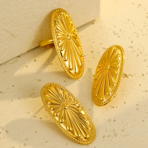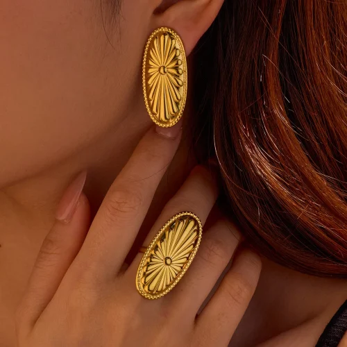 18K Gold Plated Stainless Steel Ear Jewelry Set Light Luxury New Trendy Ring Earrings and Fine Studs Unique Niche Design