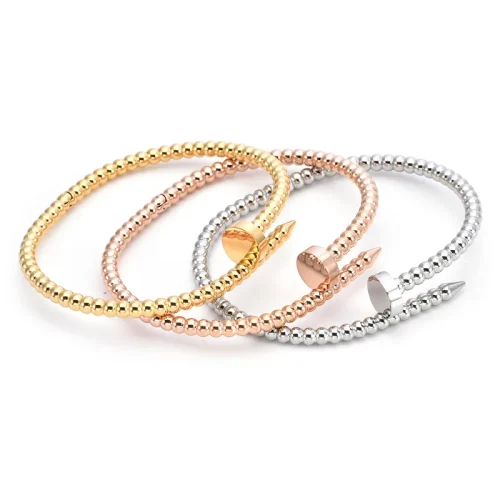 18K Gold Plated Stainless Steel Jewelry Beaded Shaped Waterproof Open Cuff Nail Bangle Accessories Bracelets for Women Girls