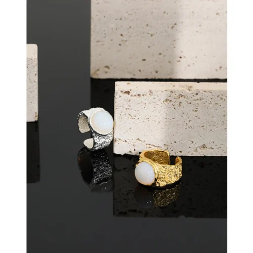18K Gold Plated Stone Opal Ring Stone 925 Sterling Silver Adjustable Opal Ring for Women