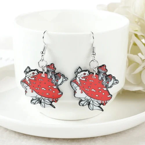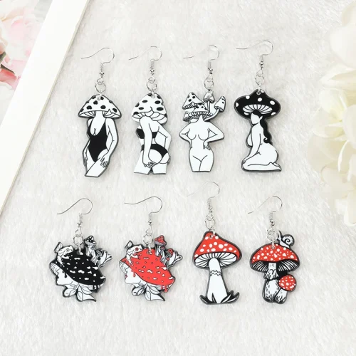 1Pair Magic Mushroom Girl Dangle Earrings Creative Acrylic Sexy Lady Earring for Women Birthday Gift
