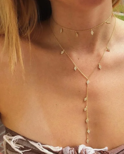 2 Layer Women Necklace Geometric Charm Drop Choker Y Lariat LONG Necklaces