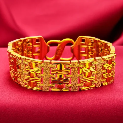 18K Yellow Gold Plated Thick Carved Wrist Link Chain Men’s Domineering Hip Hop Punky Street Style Charm Bracelet for Gift