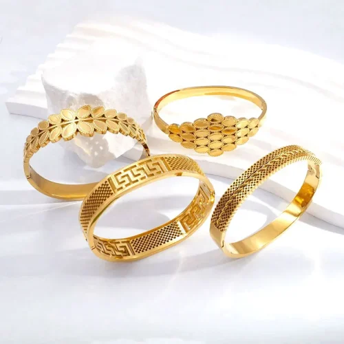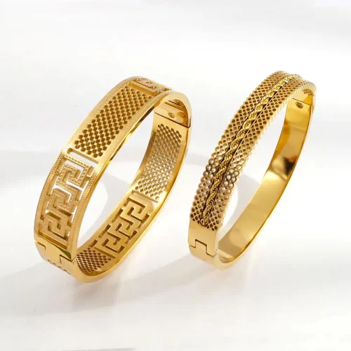 2023 European and American Stainless Steel Cuff Bracelet Bangle Stainless Steel Disenador Hollow Great Wall Bangle