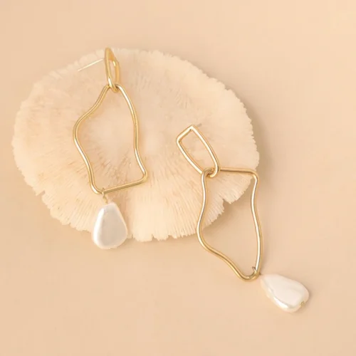 2022 Trend Drop Design Charm Irregular Dangle Pearl 18k Gold Plated Earrings for Women