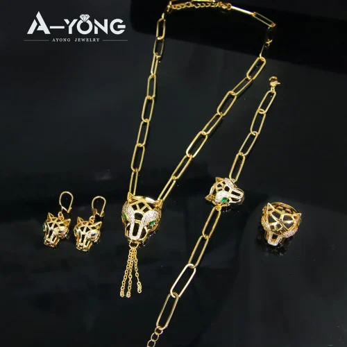 2022 Popular Style Women Leopard Jewelry 18k Gold Plated Jewelry Set Copper Jewelries 3pcs Sets