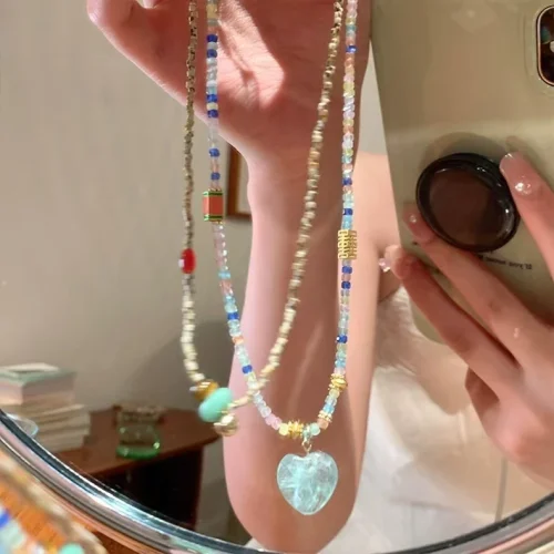 2024 New 925 Silver Material High End Design Sky Blue Love Zircon Necklace