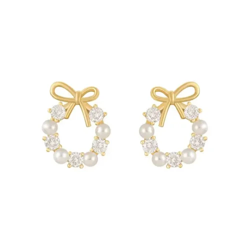 2024 New 925 Silver Material High End Design Pearl Gold Bow Zircon Earrings