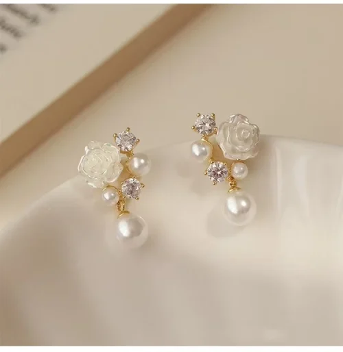 2024 New 925 Silver Material High End Design White Zircon Flower Pearl Earrings