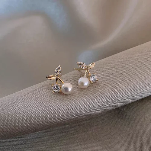 2024 New 925 Silver Material High End Design Golden Cherry Zircon Pearl Earrings