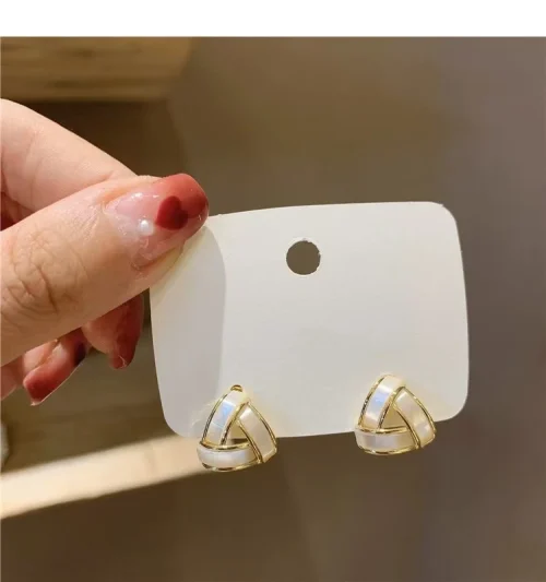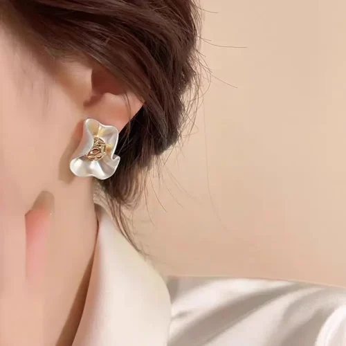 2024 New 925 Silver Material High End Design White Curved Flower Polygonal Square Gold Earrings