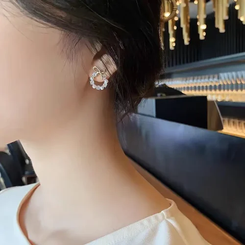 2024 New 925 Silver Material High End Design White Bow Zircon Ball Earrings