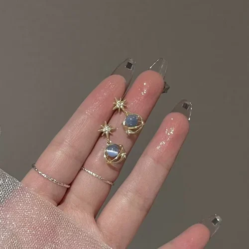 2024 New 925 Silver Material High-end Design Gold Star Blue Zircon Earrings
