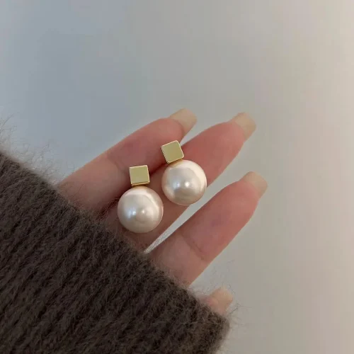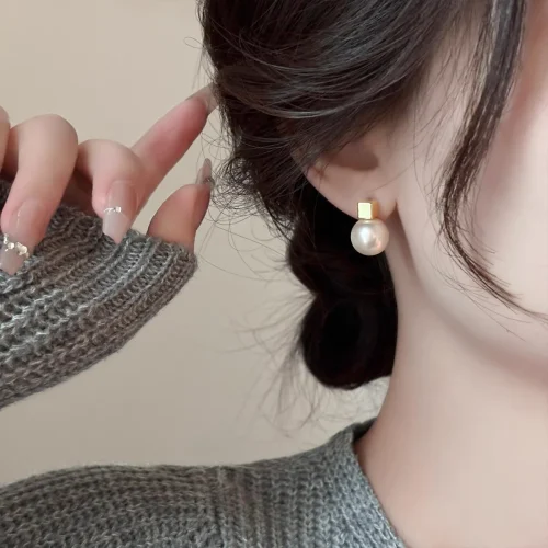 2024 New 925 Silver Material High-end Design Gold square Pearl Earrings