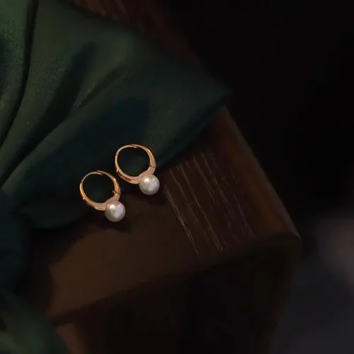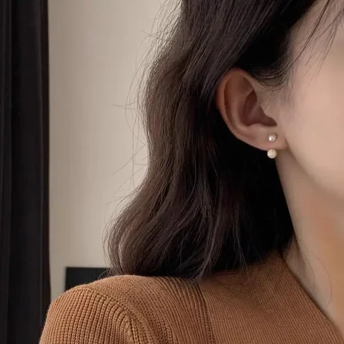 2024 New 925 Silver Material High-end Design Gold Pearl Round Zircon Earrings