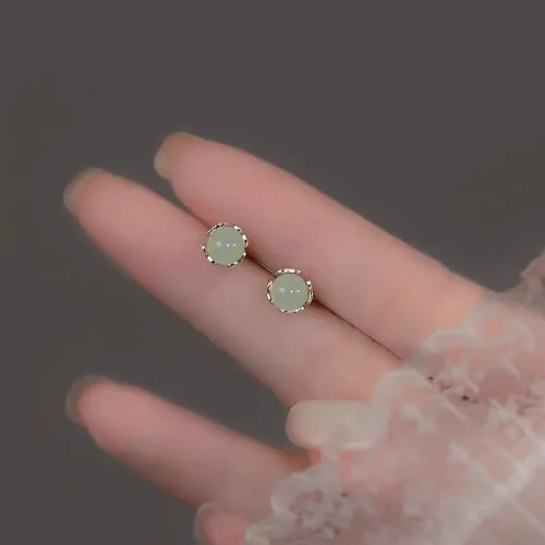 2024 New 925 Silver Material High-end Design Gold Round Ball Green Zircon Earrings
