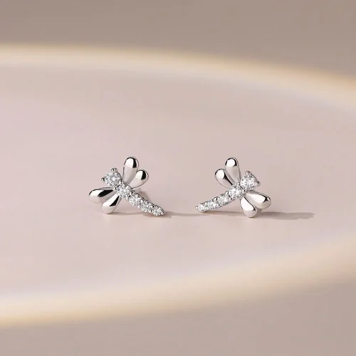 2024 Newest Style Crystal Zircon Dragonfly S925 Sterling Silver Stud Earrings for Women Jewelry Accessories YB-XY-063