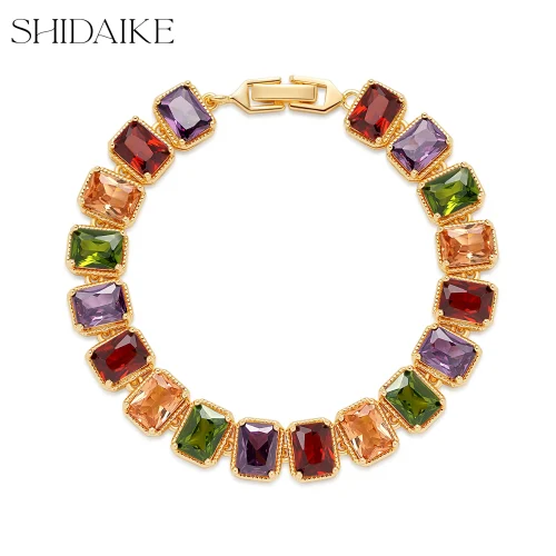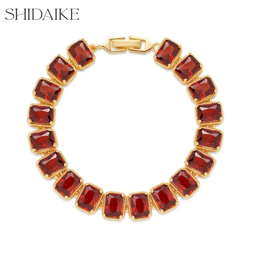 2024 Trendy Gold Plated Brass Fashion Jewelry Set Crystal Necklace with Square Gemstone Color Diamond Wedding Bride