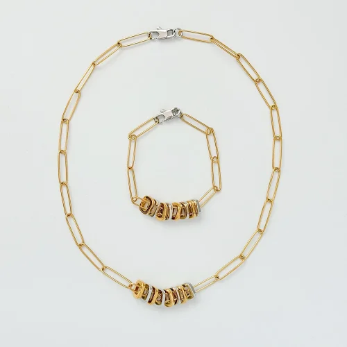 2024 New Stainless Steel Waterproof Jewelry Set 18k Gold Plated Geometric Pendant Necklace Paper Clip Chain Bracelet YF3858