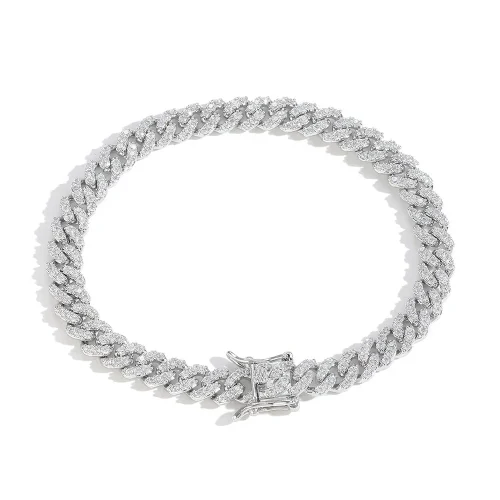 2024 New Style Real Gold Color Hip Hop Brass and One Row Bling Zircon Iced Out 6mm Cuban Chain Bracelet for Women Men