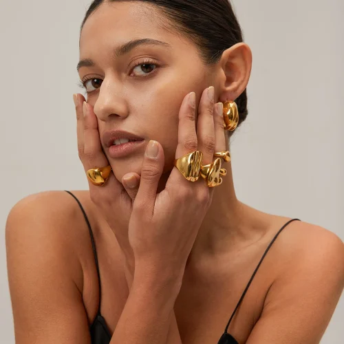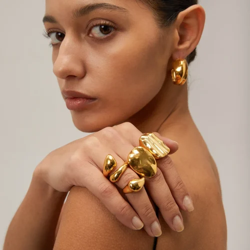 2024 New Trendy Non Tarnish Jewelry Geometric Chunky Ring Water Drop Rings 18K Gold Plated Stainless Steel Ring