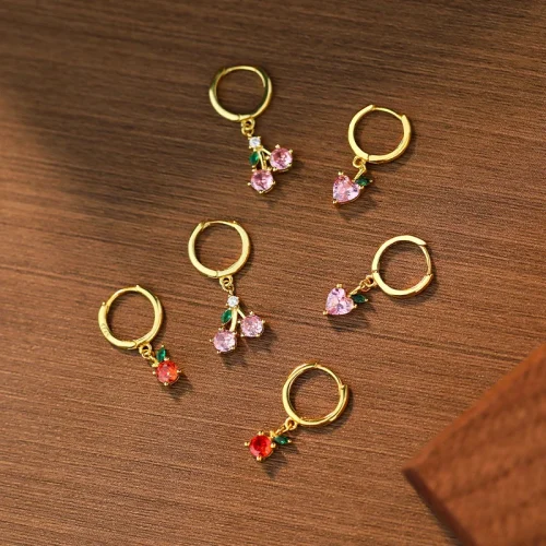 2024 Women’s Trendy 925 Silver Fruit Jewelry Collection Apple Peach Strawberry Cherry Pendant Hoop Earrings Zircon