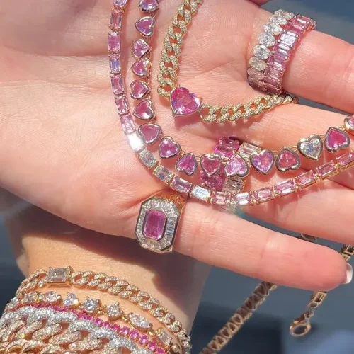 2024 Unique Green Pink Iced Out 5A CZ Paved Dazzling Women Necklace Jewelry for Wedding Party Gift True Love Heart Choker