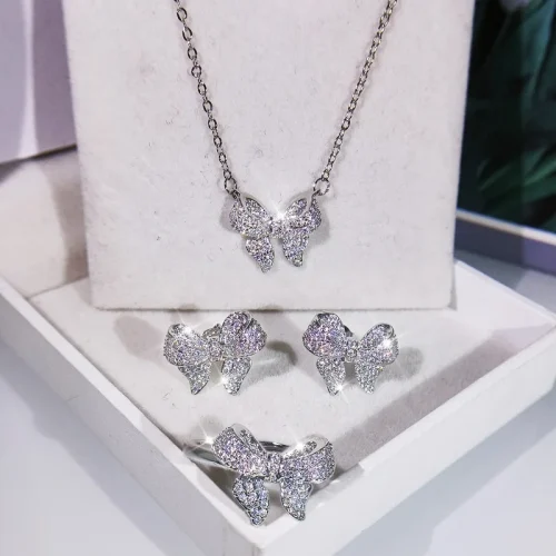 2024 Women’s Fashion Jewelry Set Zircon Butterfly Pendant Necklace Earrings Ring 3pieces Set Wedding Jewelry Set Gift