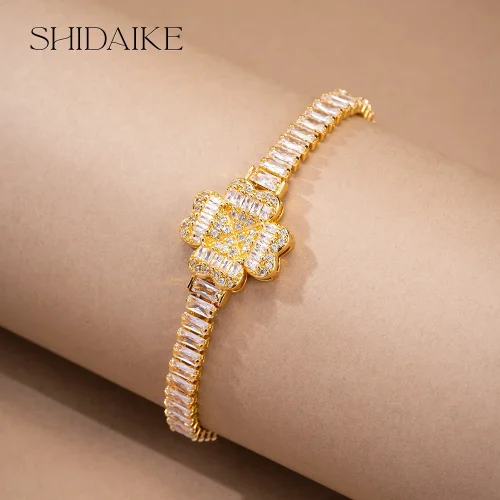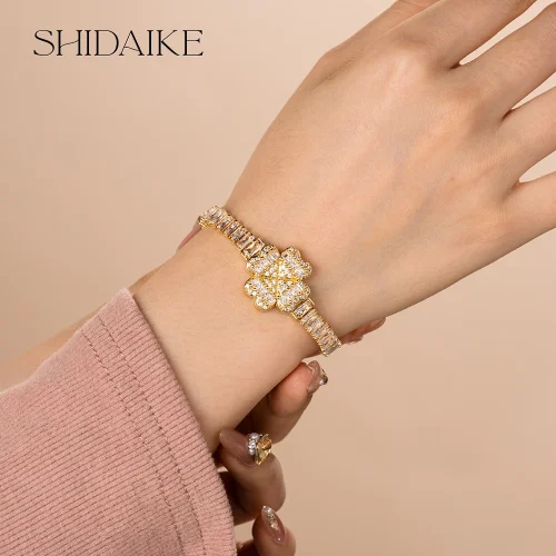 2024 Vintage Metal Zircon Open Adjustable Gold Plated Charm Flower Bracelet for Women Fashionable Bracelets & Bangles