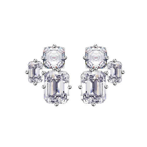 2025 Fine Jewelry Bridal Wedding Emerald Cut 5A Zirconia 925 Sterling Silver Stud Earrings With Diamond for Women