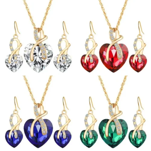 Fashion Bridal Wedding Jewelry Set Heart Diamond Crystal Bijoux Earrings Necklace Jewelry Set for Women