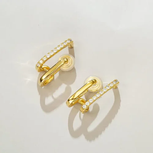 2025 Fashion Jewelry Double Layer Ear Cuff 18K Gold Plated Zircon Clip on Earrings for Women