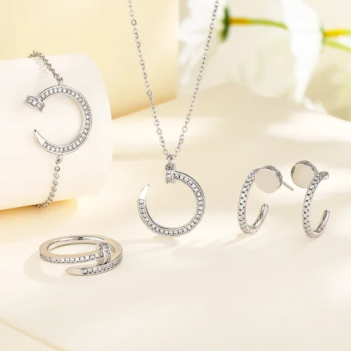 Fashion Brass Jewelry Pendant Necklace Earring Bracelet Ring Jewelry Set Women Girl Set Plated Gold Jewelry Set