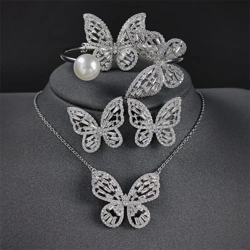 High Quality Earrings Bracelet Necklace Ring 4pcs/set Fashion Butterfly Zircon Diamond Jewelry Set