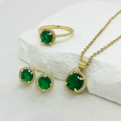 High Quality Jewelry Sets Round Green Jade Ring Necklace Earrings Stud Sets