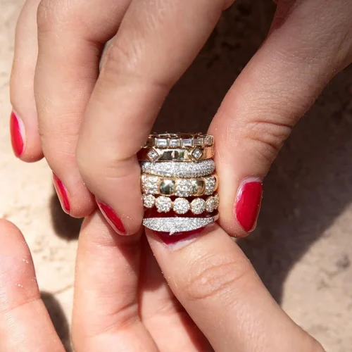 High Quality Bling Fashion Jewelry 925 Sterling Silver 14K 18K Gold Plated/ Vermeil CZ Stackable Ring Set for Wedding